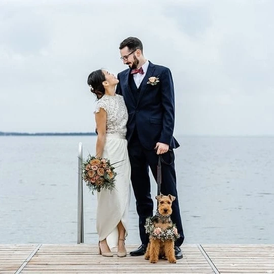 Vi tilbyder knaphulsblomster til gommen og forloveren, så looket matcher brudebuketten. Brudepiger, svende og børn får buketter, hårpynt eller blomsterkranse, der passer til deres alder og til brylluppets stil.
